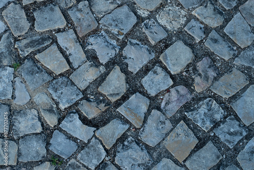 Obraz premium Rough Portuguese Pavement Grey Stone Sidewalk Texture Background Pattern