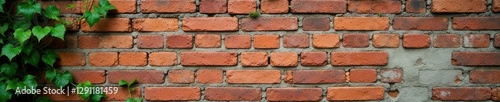 Fototapeta premium Rough stone brick wall with weathered mortar and vines, background, texture, rustic