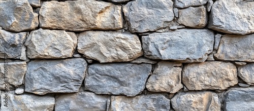 © vxnaghiyev, Fototapeta premium Rough stone wall serving as a creative background texture Natural stone masonry featuring uneven seams Stone wall backdrop. with copy space image. Place for adding text or design