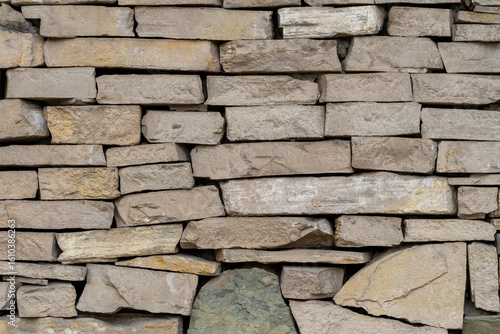 © k_samurkas, Obraz premium Rough Structure Stone Wall Background Texture. Large stone wall.