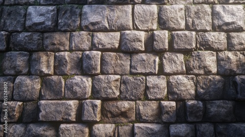 © VRVisionary, Obraz premium Rough textured stone wall featuring uneven bricks and natural imperfections for architectural and design backgrounds