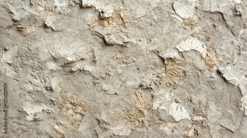 © SY, Naklejka premium Rough textured wall with visible straw. Ideal for backgrounds, rustic designs, or historical contexts.
