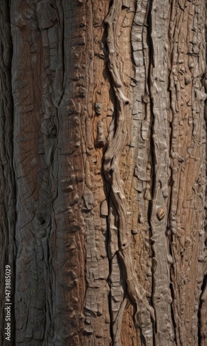 © Kim, Obraz premium Rough tree bark texture, earthy browns and grays, rustic, pattern, natural