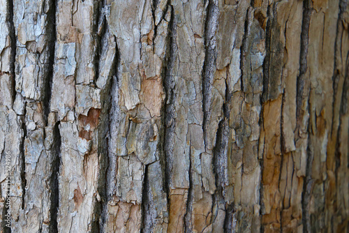 Fototapeta premium Rough tree bark with deep cracks and natural textures.