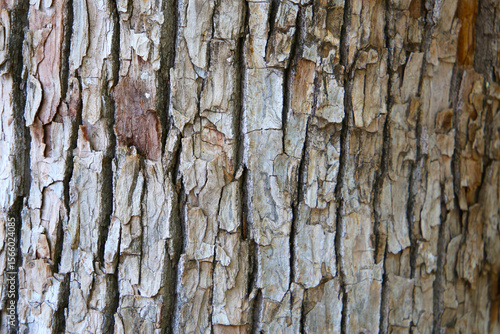Fototapeta premium Rough tree bark with deep cracks and natural textures.