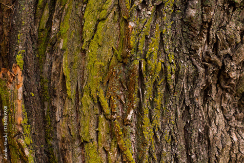 Obraz premium Rough tree bark with deep cracks and natural textures.
