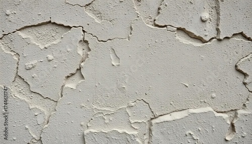 Obraz premium Rough, uneven stucco wall with deep crevices and faded paint, texture, worn