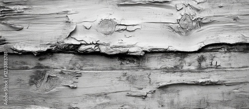 Obraz premium Rough, weathered wooden plank texture with peeling paint in monochrome.