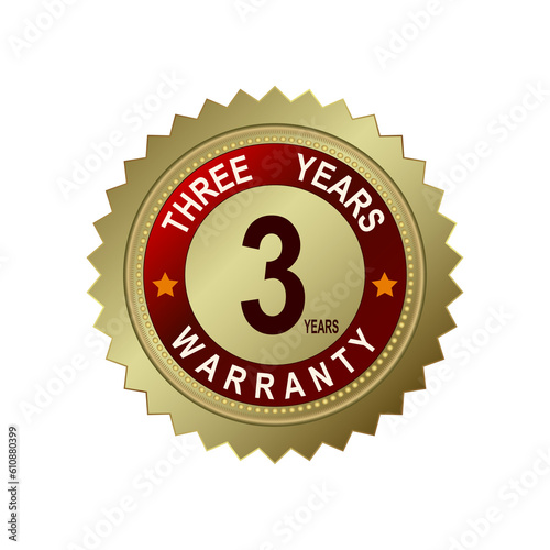 Fototapeta premium Round and rectangular emblems of golden color with text for three years of warranty