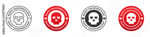 Fototapeta premium Round badge with skull and heart shape inside and text: Happy Valentine's...