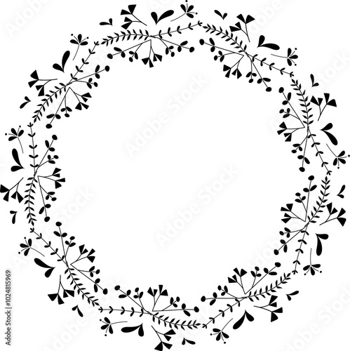Obraz premium Round black and white frame with abstract decorative flowers. Copy space....