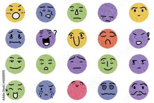 Naklejka premium Round cartoon faces character expression design.
