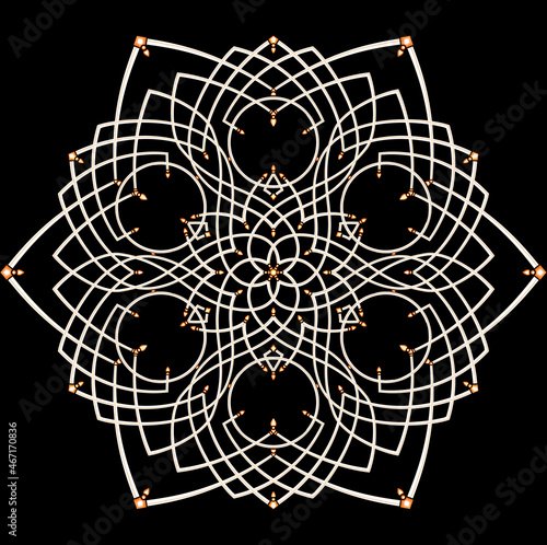 © angelhid, Fototapeta premium Round Colored Mandala on black isolated background. Patterned Design Element. Ethnic Amulet. Symmetrical pattern. Drawing for print on a t-shirt. Mandala with floral patterns. Yoga template.