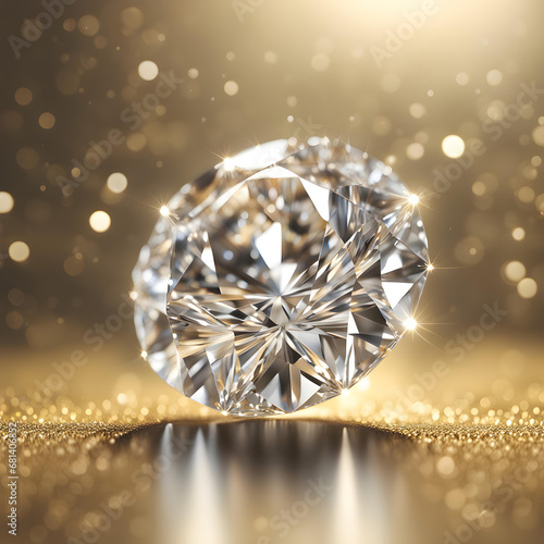 Fototapeta premium Round cut diamond on golden sparkling particle background