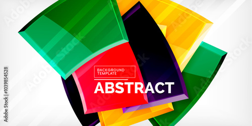 © antishock, Obraz premium Round 3d shapes, plates background. Creative composition design template