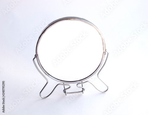 © Helga Yastrebova, Fototapeta premium Round desktop small mirror on a white background