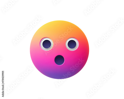 © HQ Stock, Fototapeta premium Round Emoji Face with Gradient Pink to Yellow and Surprised Eyes on a Black Background emoticon expression, Png Transparent, Isolated on White