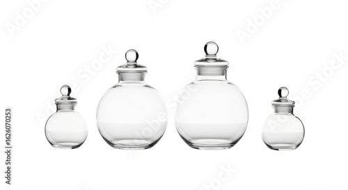 © Abid, Obraz premium Round Empty Glass Jars in Varying Sizes