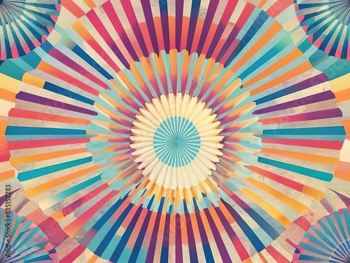 © Thachakrit, Obraz premium Round fan pattern on geometric abstract background.