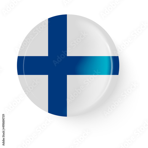© writerfantast, Obraz premium Round flag of Finland. Pin button. Pin brooch icon, sticker. Web button.