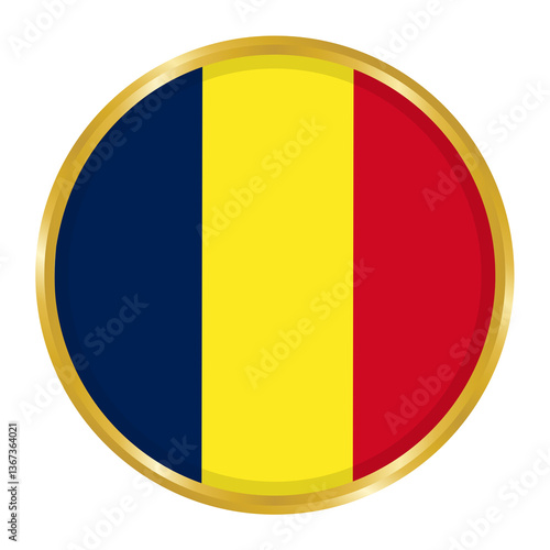 Fototapeta premium Round Flag of Romania with Golden Border, Romania Flag Button