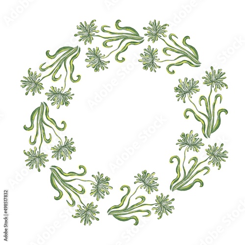 © Julia, Naklejka premium Round floral frame in green. Frame with flowers for invitations, greetings, greeting cards.