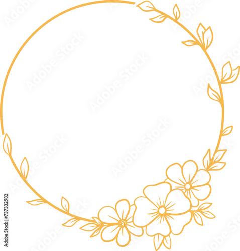 © Ymz_Design, Obraz premium Round Floral frame with hand drawn flowers and leaves for wedding invitation