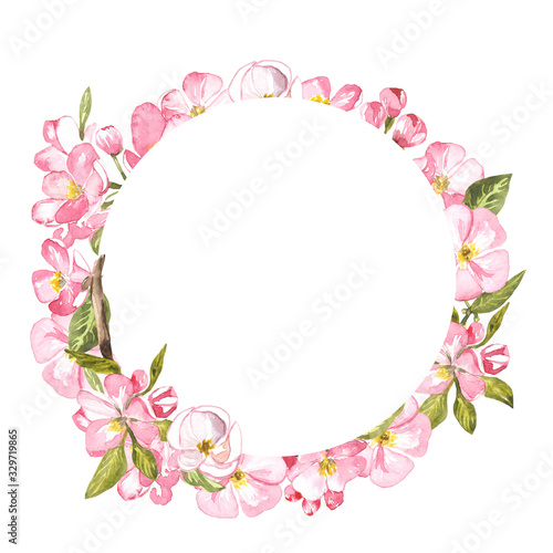 © Lyubov, Fototapeta premium round frame watercolor apple blossom