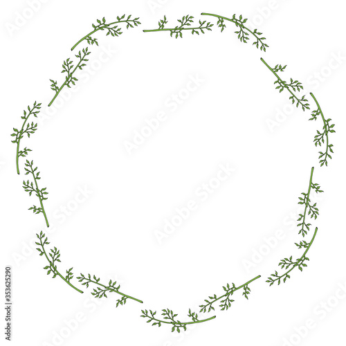Obraz premium Round frame with beautiful green branches on white background. Vector image.