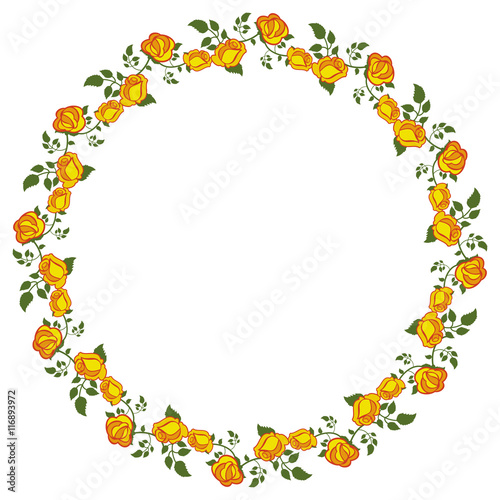 Fototapeta premium Round frame with yellow roses. Vector clip art.