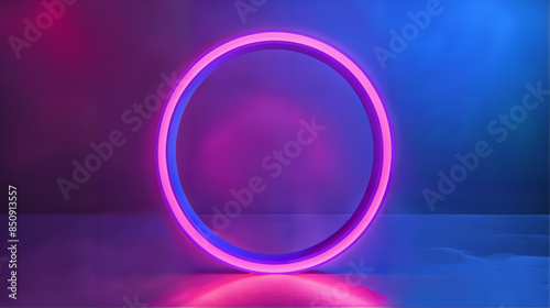Obraz premium Round Glowing Neon Light Sign, Cyberpunk Studio Stage Backdrop Blue Purple...