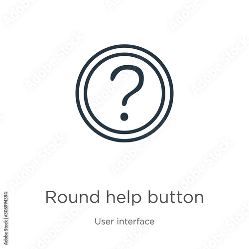 © Premium Art, Fototapeta premium Round help button icon. Thin linear round help button outline icon isolated on white background from user interface collection. Line vector round help button sign, symbol for web and mobile