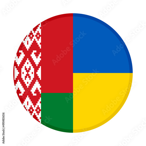 Fototapeta premium round icon with belarus and ukraine flags isolated on white background