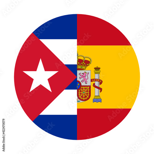 Obraz premium round icon with cuba and spain flags isolated on white background