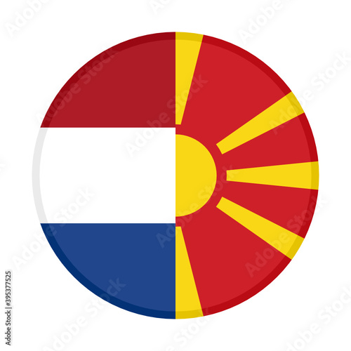 Fototapeta premium round icon with netherlands and north macedonia flags, isolated on white...