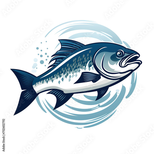 Fototapeta premium round logo emblem with a fish on white background. Symbol badge for a fishing brand, restaurant and seafood store, a fishing company