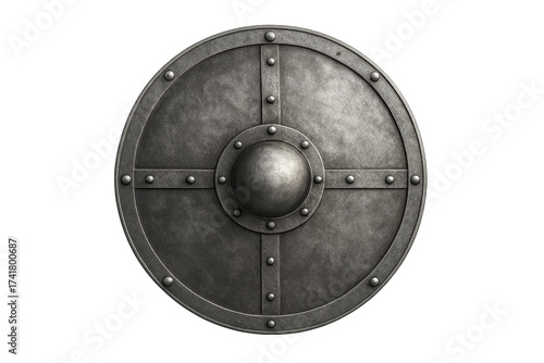 © Tusike, Naklejka premium Round medieval metal shield providing protection