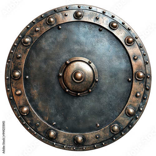 © SRITE KHATUN, Naklejka premium Round Metallic Shield with Rivets