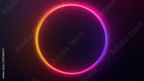 Obraz premium Round neon frame glowing with a gradient of colors, set against a dark...