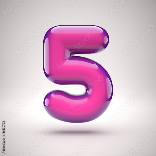 © koya979, Naklejka premium Round pink glossy font 3d rendering number 5