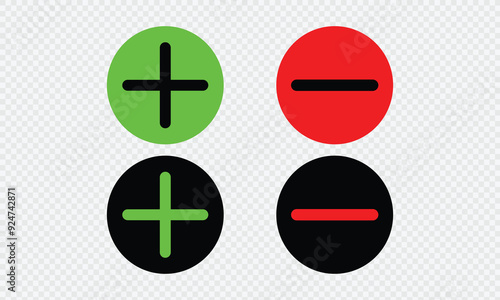 © Abir Debnath, Obraz premium Round plus and minus icons set with different thicknesses for web site and mobile app. Vector
