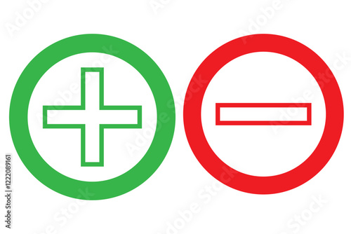 Fototapeta premium Round plus sign and minus sign icon set. Vector.
