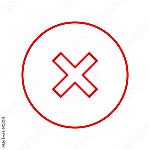 Fototapeta premium Round red X mark thin line icon, button, cross symbol on white background