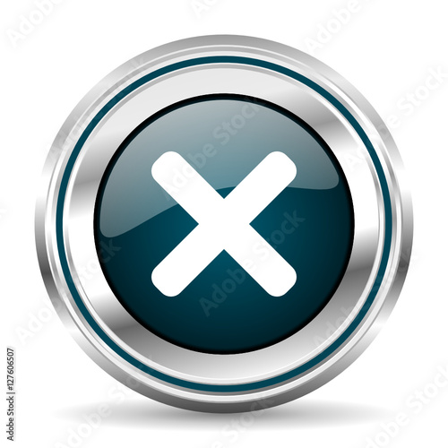 Obraz premium Round silver cancel metallic vector icon.