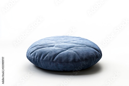 © El Media, Naklejka premium Round Velvet Pillow in Blue on White Background for Home Decor