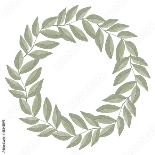 © Marina, Naklejka premium Round watercolor frame made of leaves in a natural, hand-painted style. Perfect for invitations, greeting cards, eco branding, packaging, and seasonal design projects.