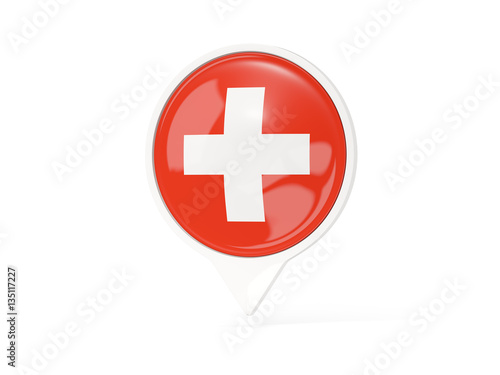 Fototapeta premium Round white pin with flag of switzerland