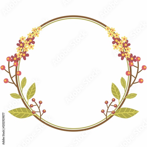 © NurulDewi, Fototapeta premium Round wildflower frame. Wreath with pink and yellow flowers.