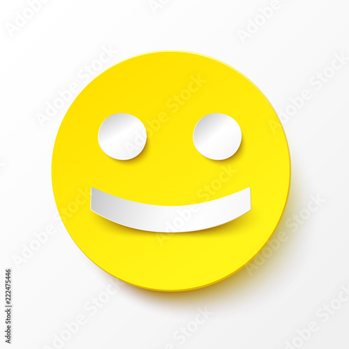 © smartape, Fototapeta premium Round yellow smile in paper style with a realistic shadow. Vector happy face illustration