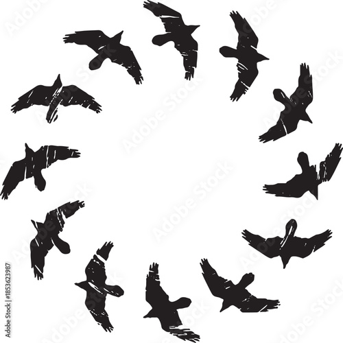 © Hordes, Obraz premium rounded flying crow silhouettes